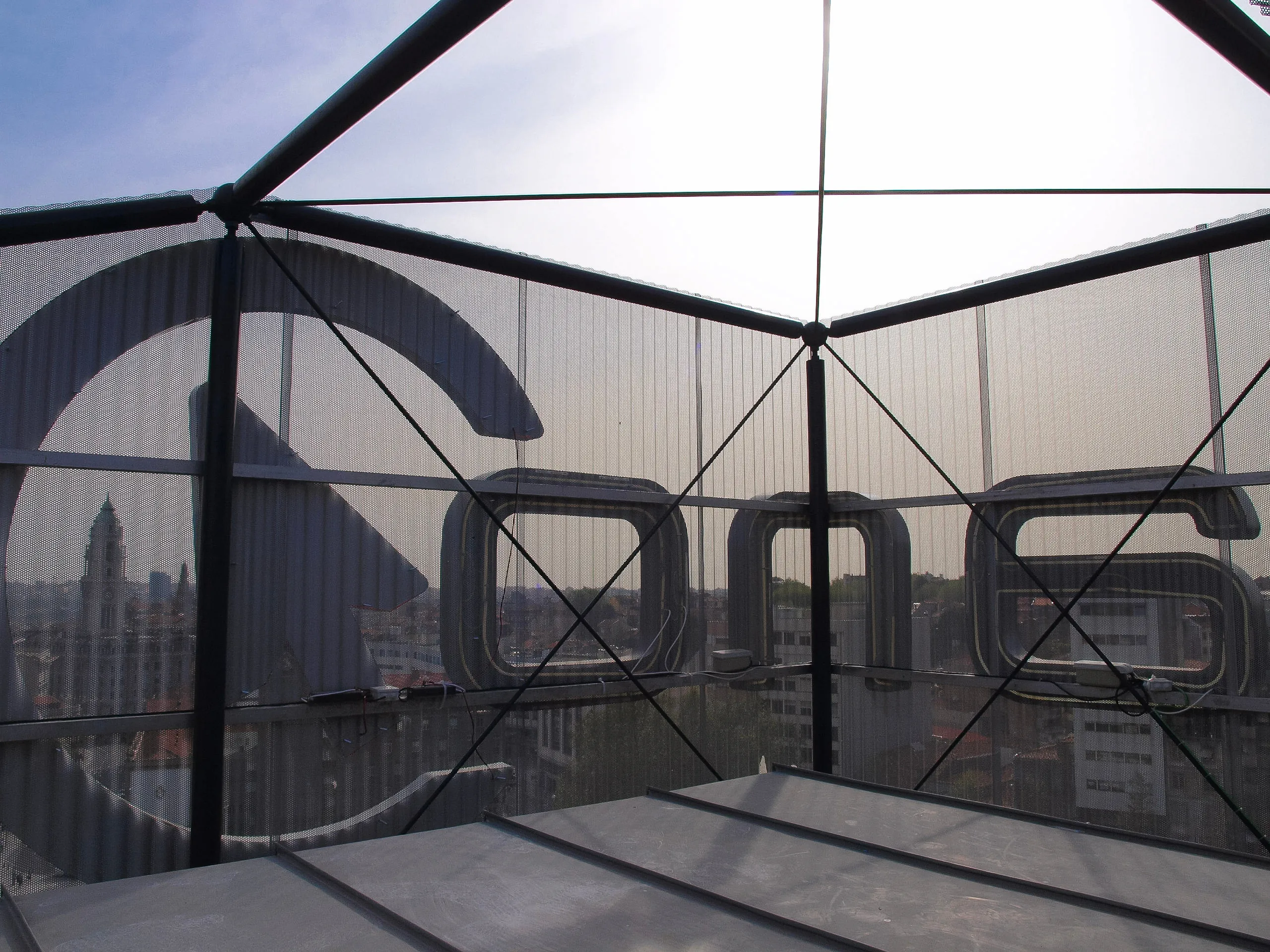 The mesh created a dual reading of the architecture. By day, it is a solid object. At night, the ghost of the original 1980s building pops out from behind the veil. To figure out how to light this, we spent a long, dark night in 2011 on top of the train station with Artur and a theatrical lighting designer named Manuel Alão. We tested various concepts. Unfortunately, the LED industry was still rudimentary back then. The alternative controllers were too expensive and demanded constant maintenance. Our grand lighting ambitions were never fully realised, but the experimentation was a very good time.