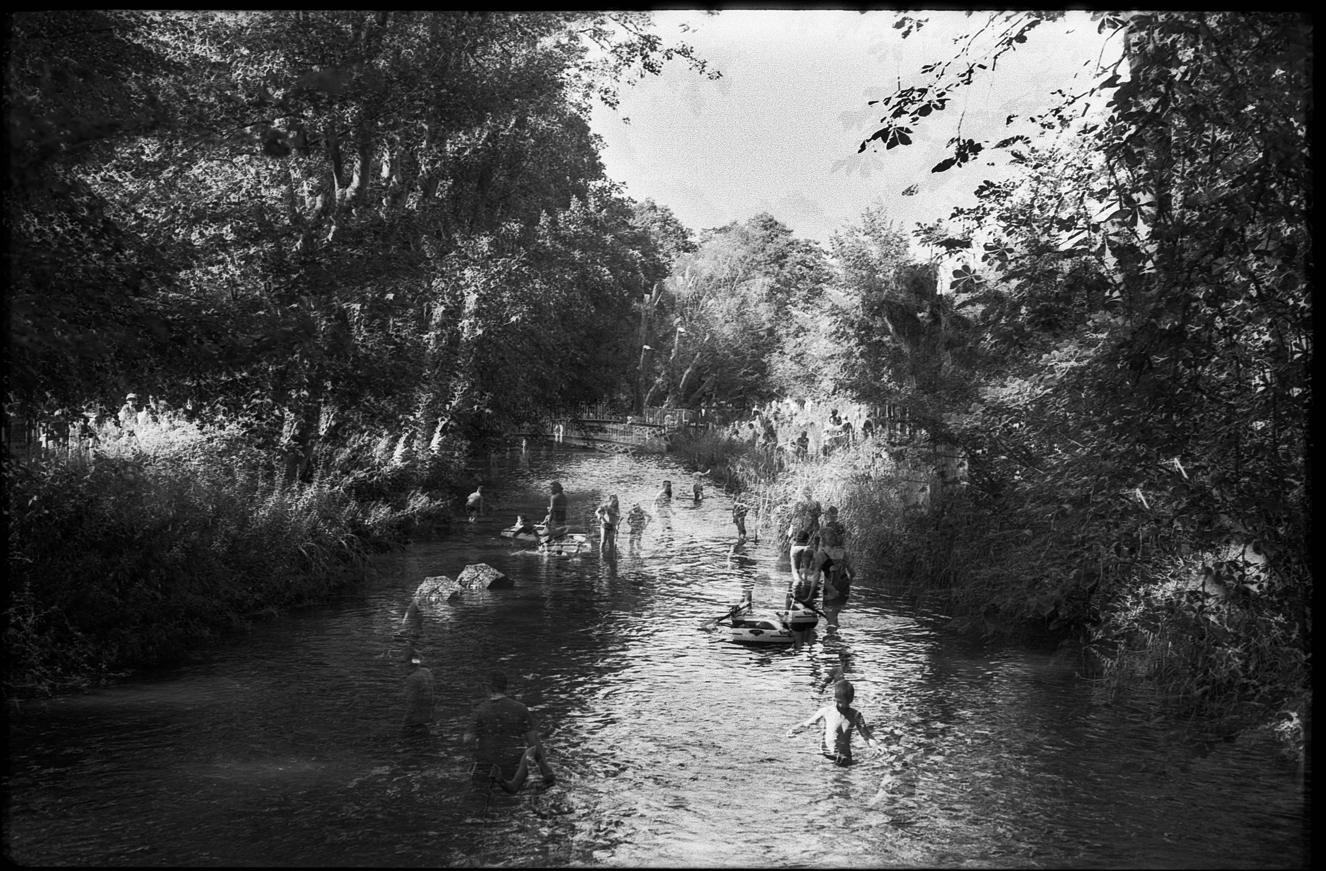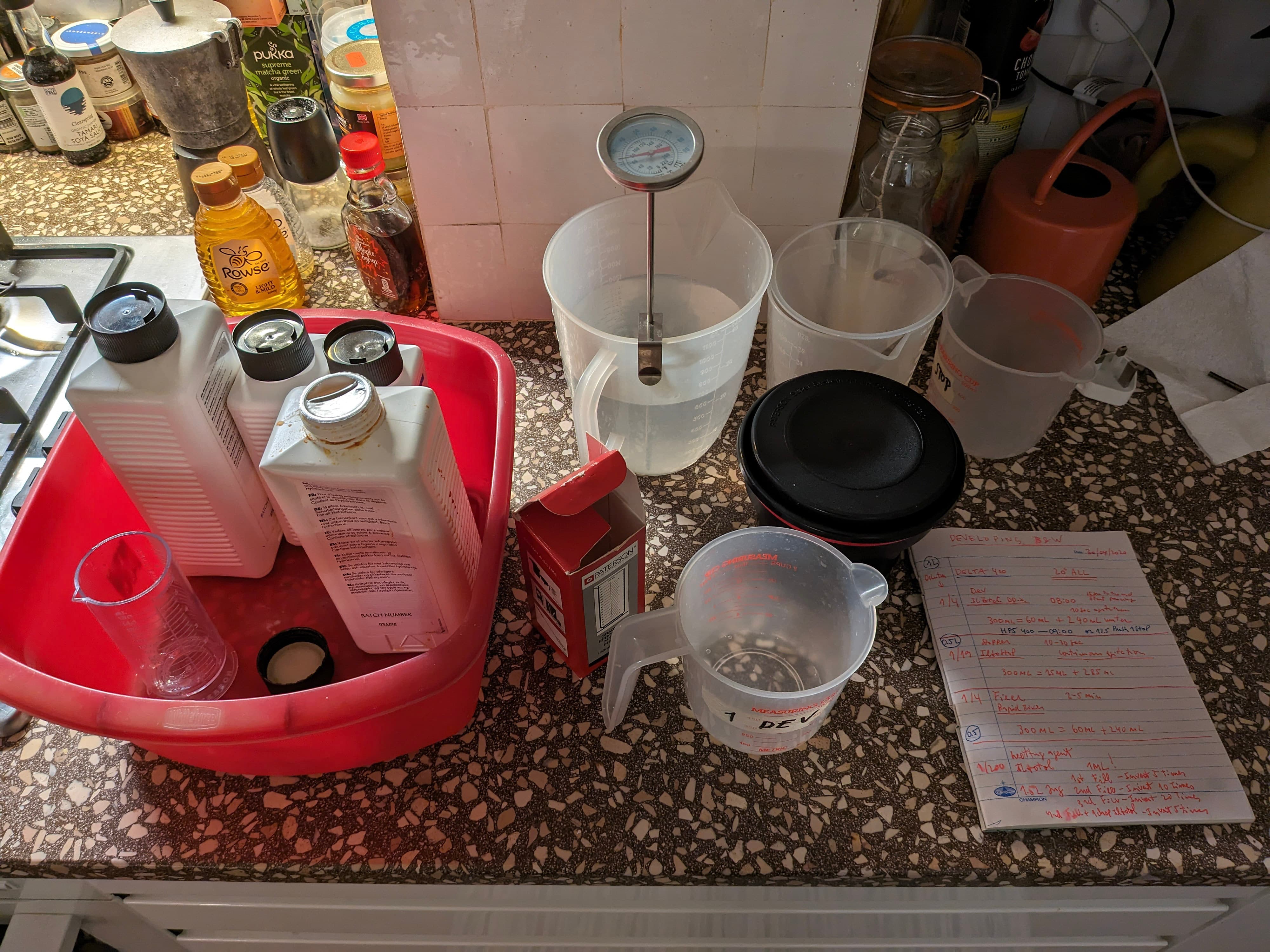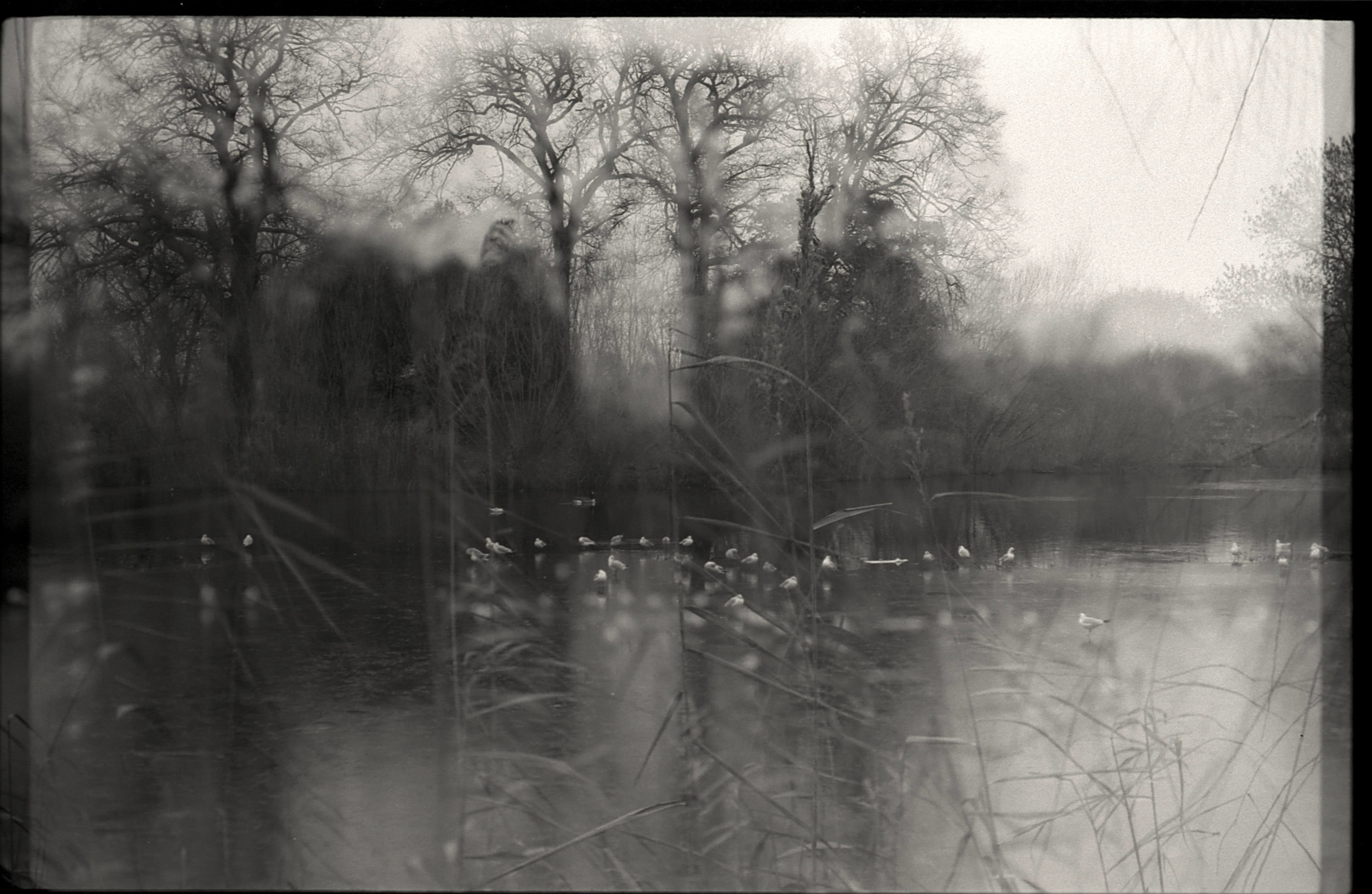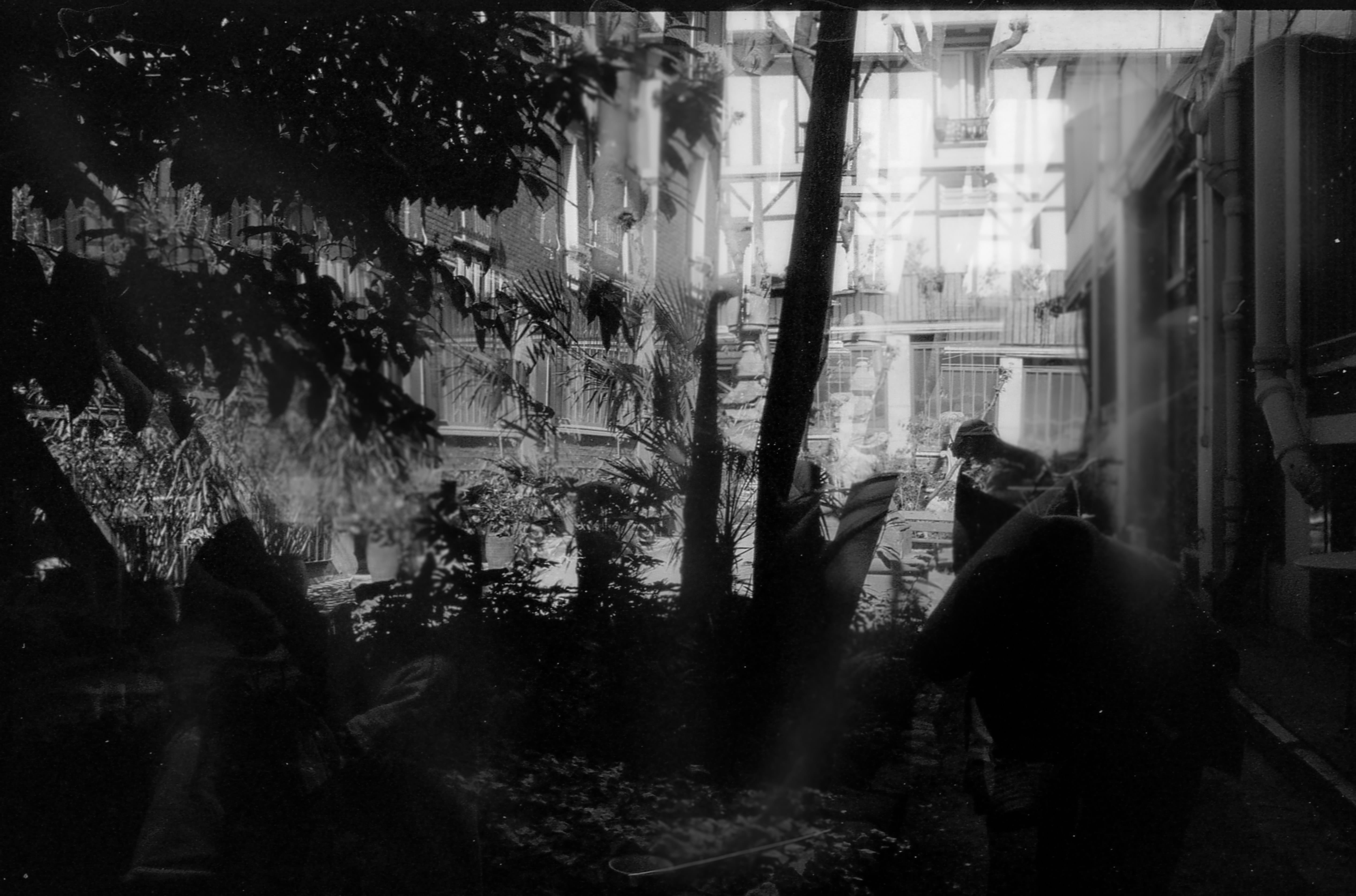 The lockdowns motivated me to develop the majority of these black and white rolls at home. I refined a process using stand development. This technique relies on static immersion in dilute chemistry. It compensates for the unpredictable overlap of multiple exposures and tames the high contrast while preserving the ghostly layering of the imprinted shots. This method disregards film ISO and camera settings. It acts as a universal equaliser to retrieve detail from even the most chaotic frames.