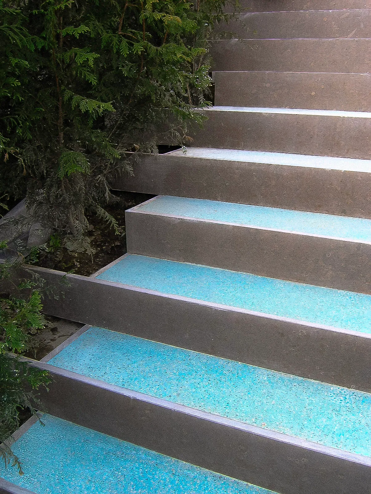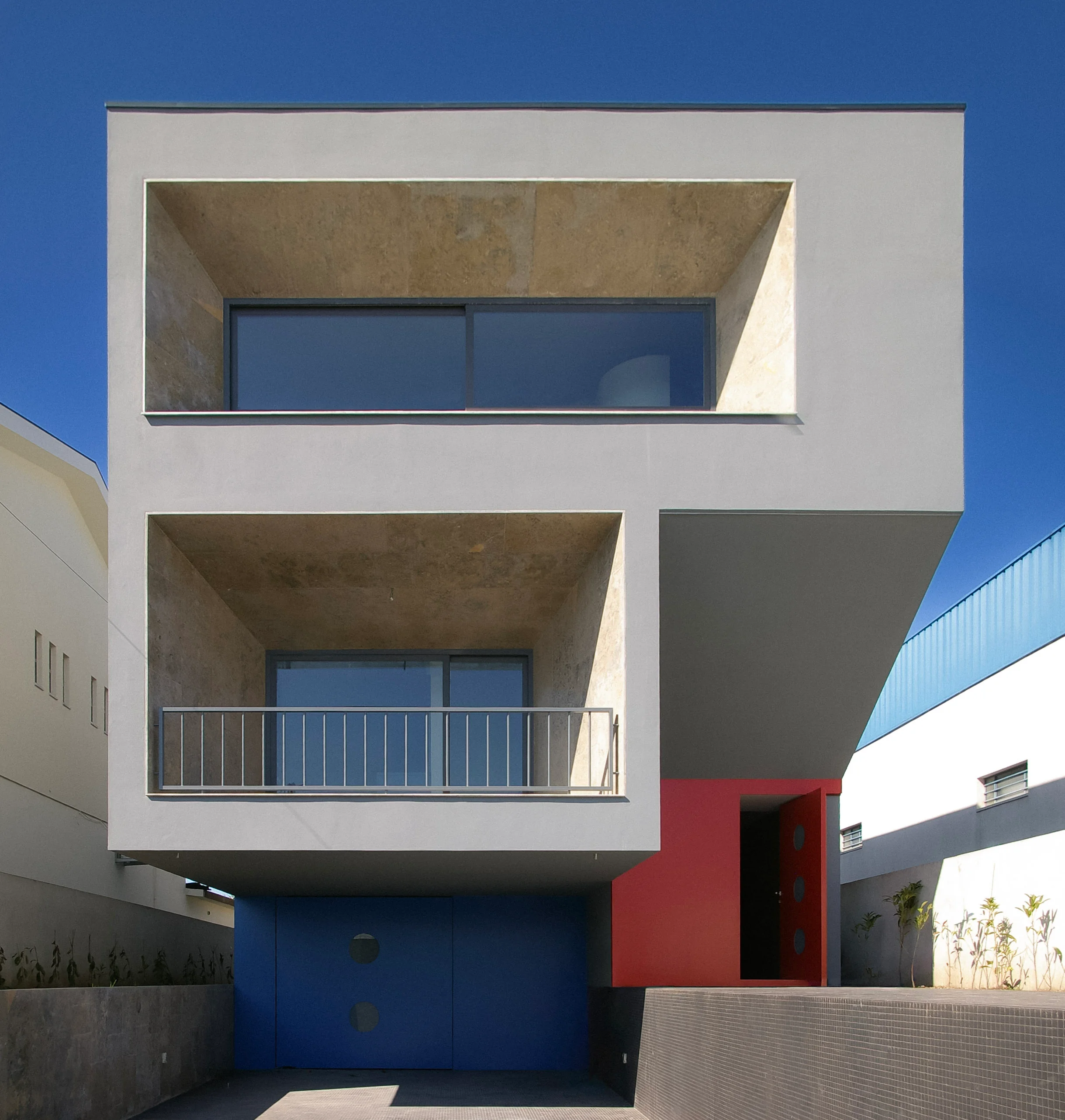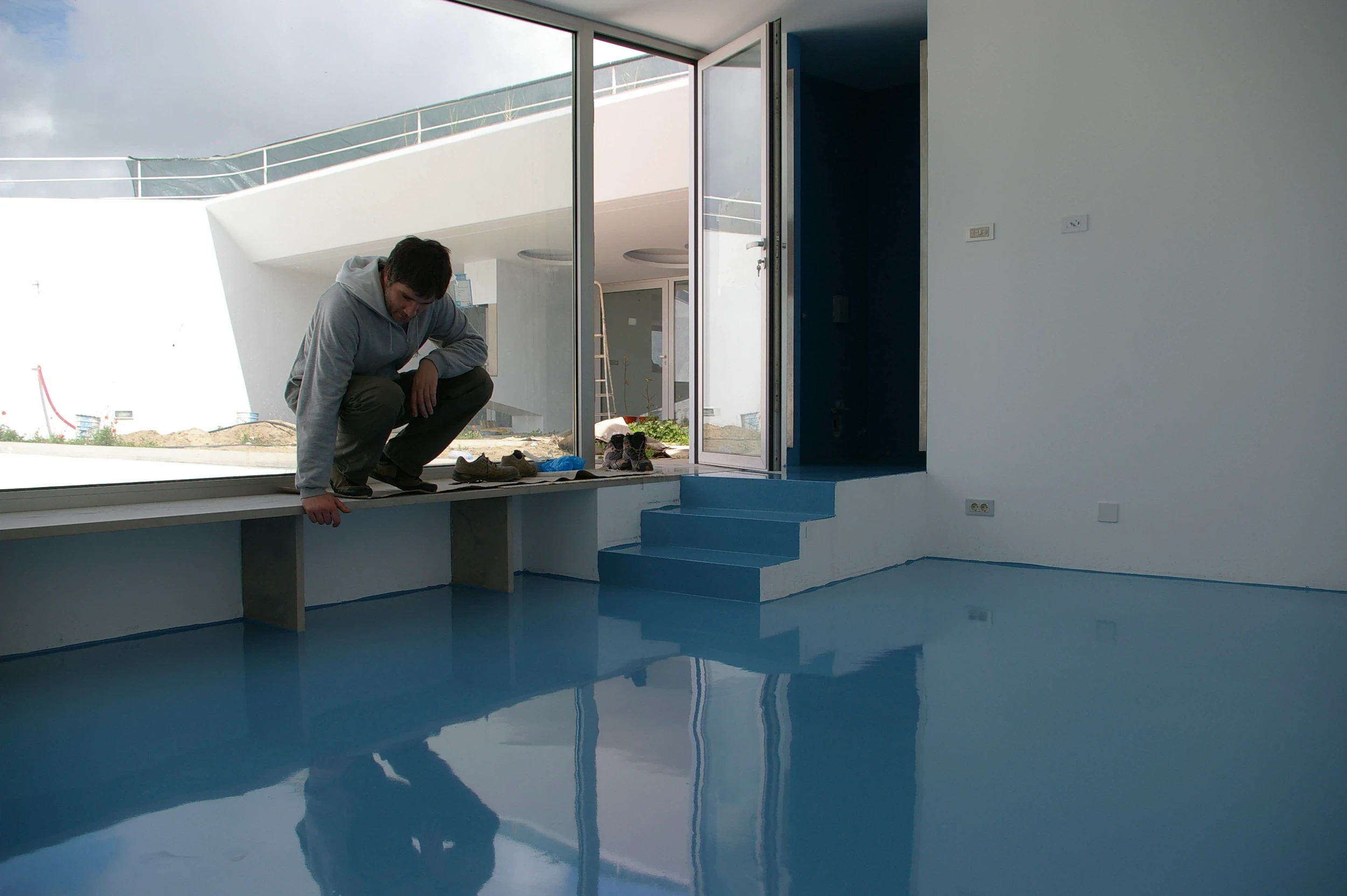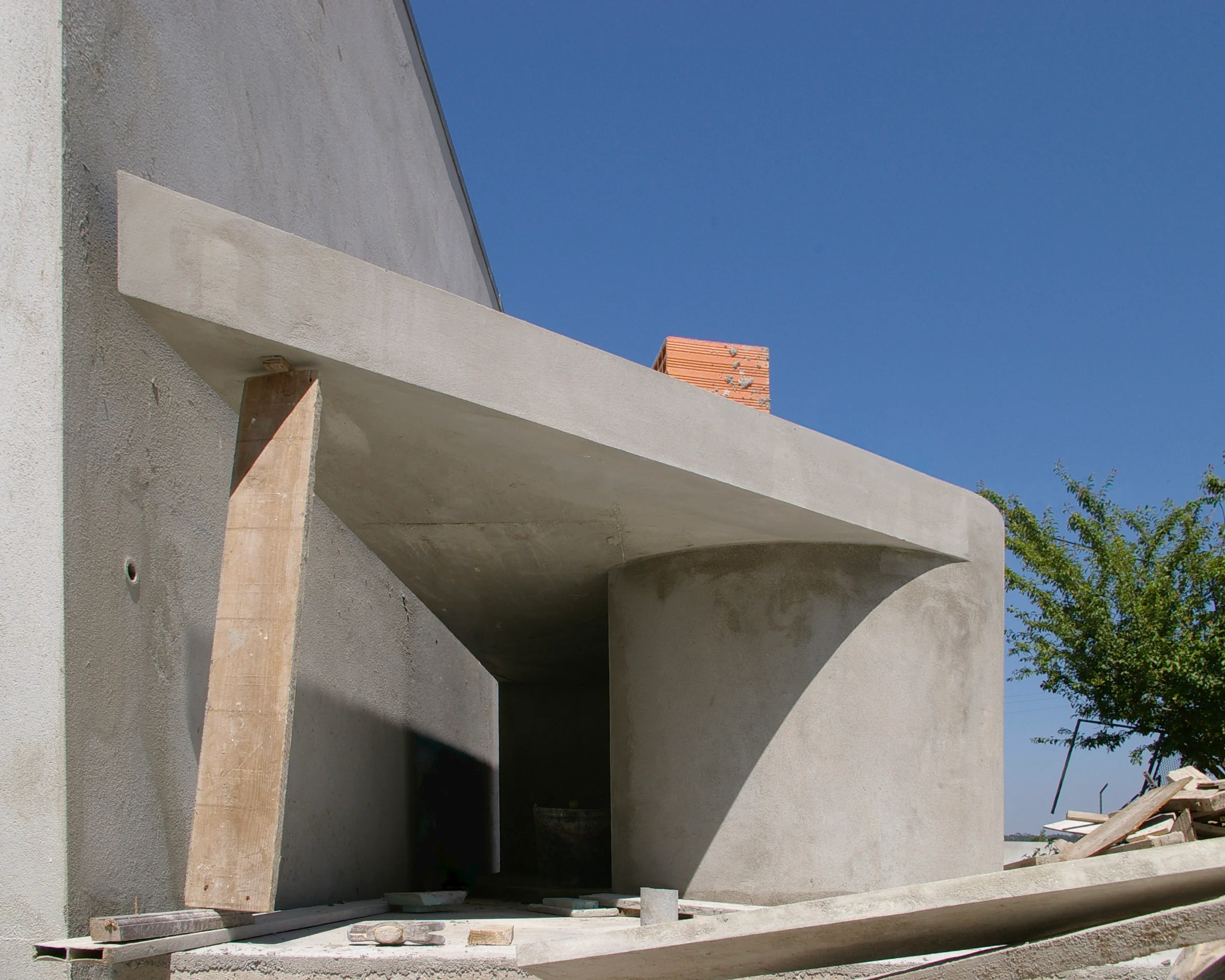 We originally attempted to tint the white concrete with blue pigment. We liaised with Cimenteira Nacional for this experiment. We quickly realised that the heavy weight of the blue pigment, unlike red oxide, caused the colour to sink entirely to the bottom of the formwork during the cast.