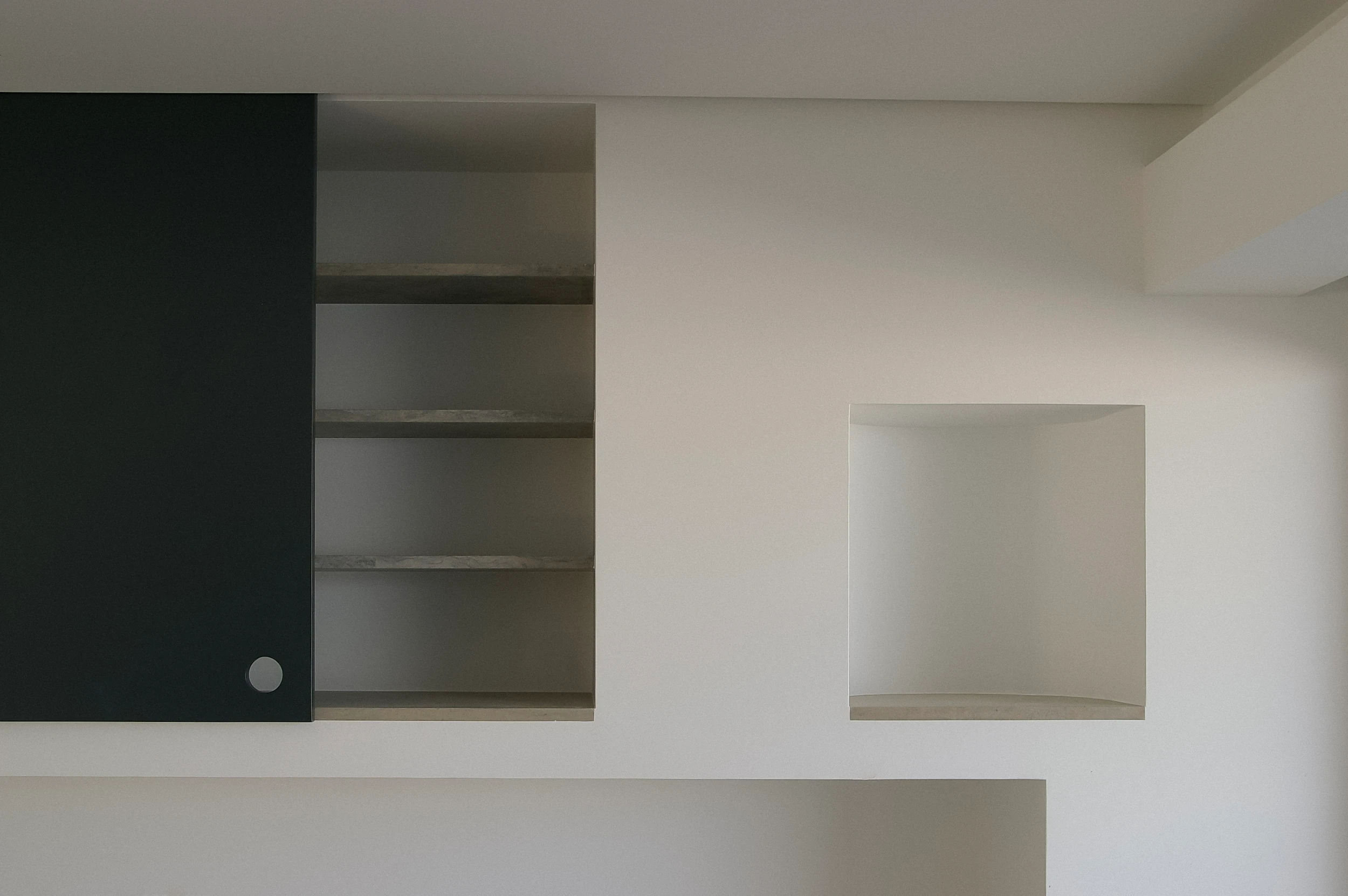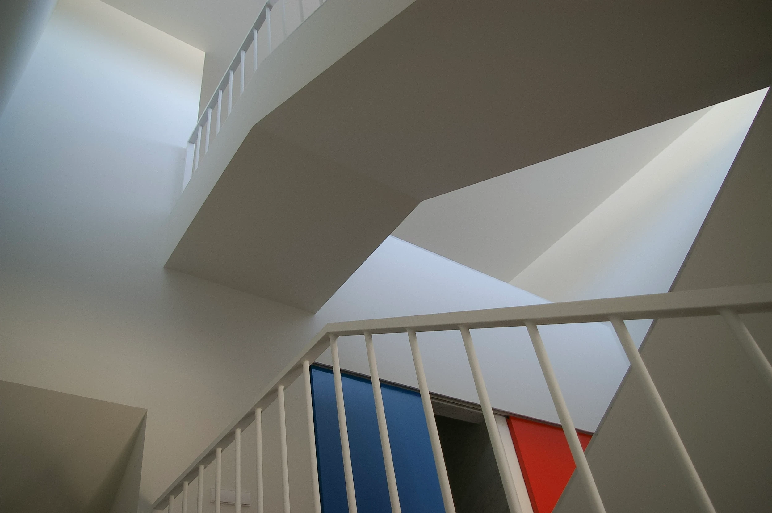 2002–2009 | Compact House II, Single Family Residence. The second in the Compact House trilogy was inserted into a proportionally narrow and deep plot. To counter the blind side walls and the inevitable gloom of the central core, we manipulated the section. By splitting the floor levels between front and back, we created a fissure in the roof. This top light washes down into a dramatic central void. The atmosphere was deliberately imbued with the spirit of the Nouvelle Vague, channeling the chromatic tension of Godard’s Le Mépris.
