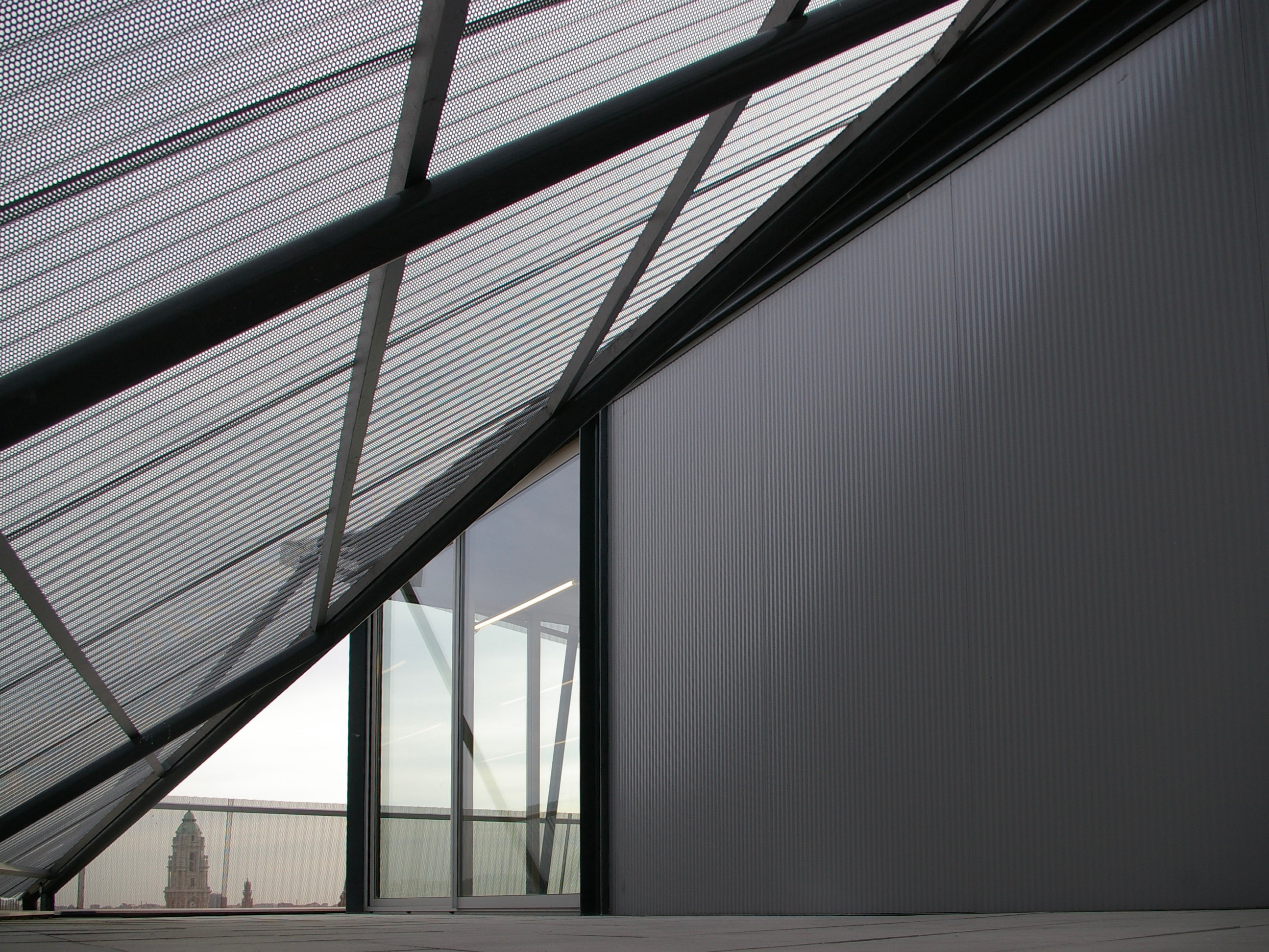 We began by stripping the roof off. We installed a new penthouse office for the directors with an exceptional view of the town, leaning heavily on Mies for the metal frame of the top floor, as it had landed there. Then we encapsulated the entire original envelope in a new metal skin. We wrapped the building in perforated aluminium sheets stretched over a steel sub-structure. This generated a new, prismatic diamond shape derived entirely from the inside out.