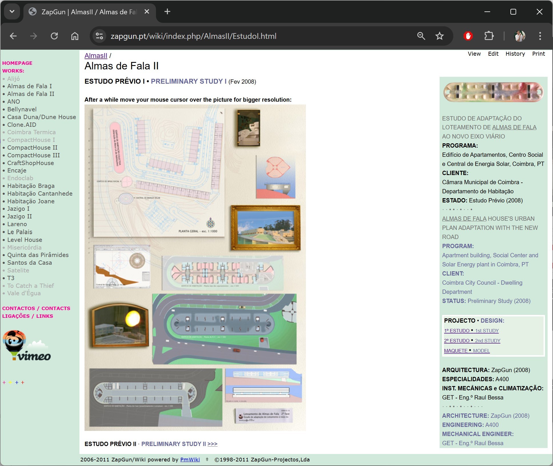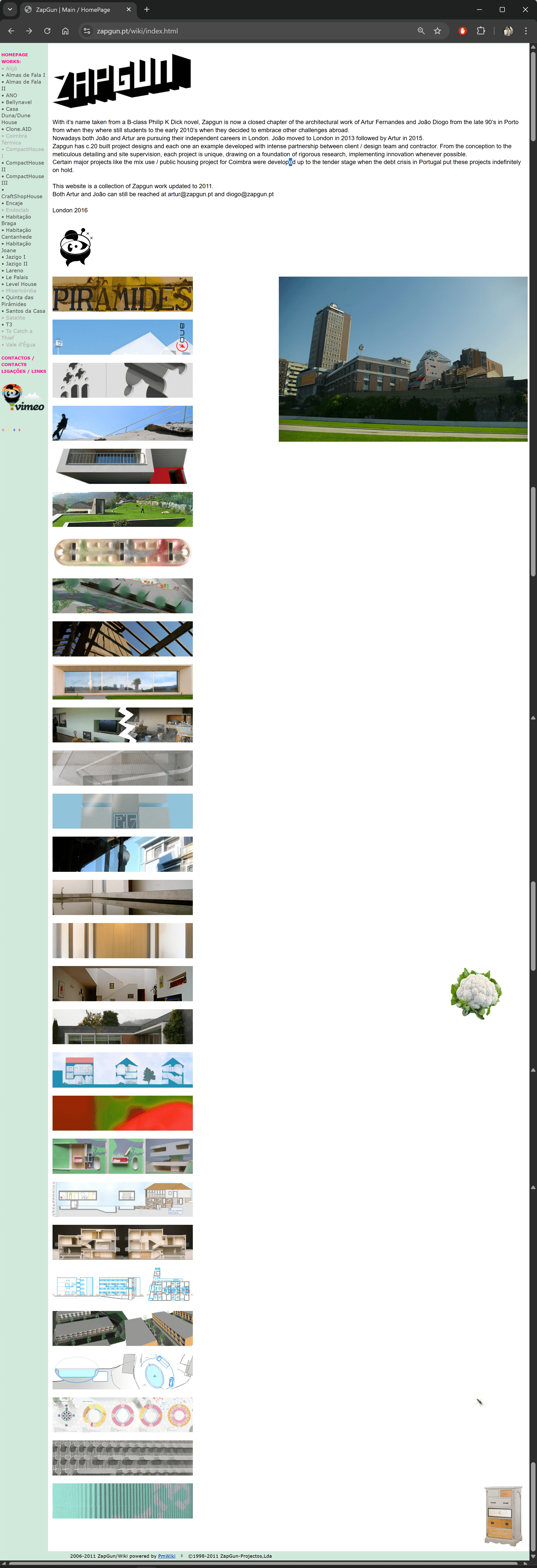 ZapGun has inhabited the web since 1998 being pioneers in the digital presence of Portuguese architecture, evolving from early blog formats to interactive Flash experiments with Nuno Baldaia, wrapped in the distinct graphic identity of Renato Seixas (FireGirl). By the turn of the millennium, they became early adopters of the PmWiki system utilizing this technology to create a dynamic, editable platform—pioneering the use of Wiki engines long before the industry standard emerged. Rejecting the static brochure sites of the time, we designed our digital "home" with the same experimental rigor we applied to our built projects.