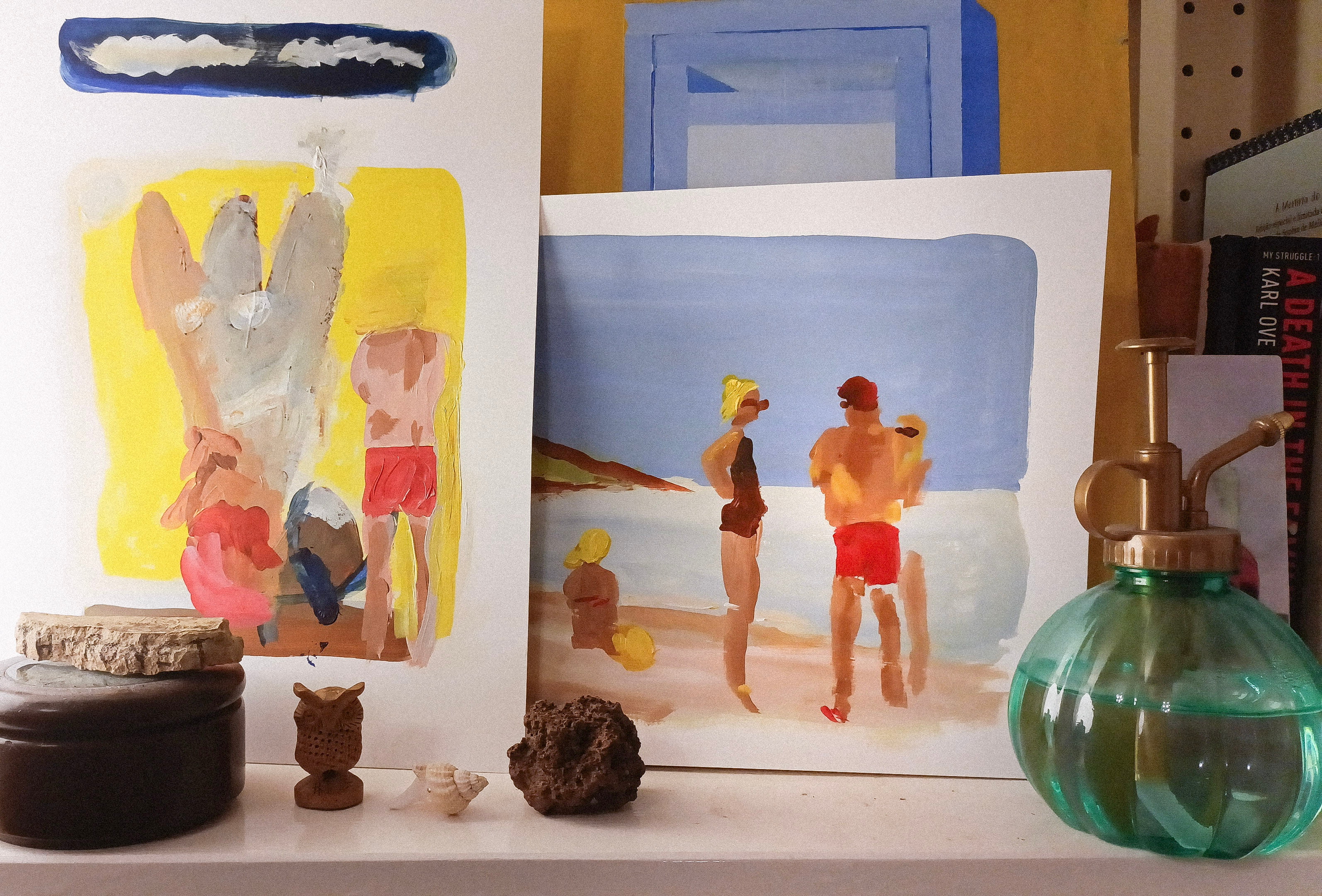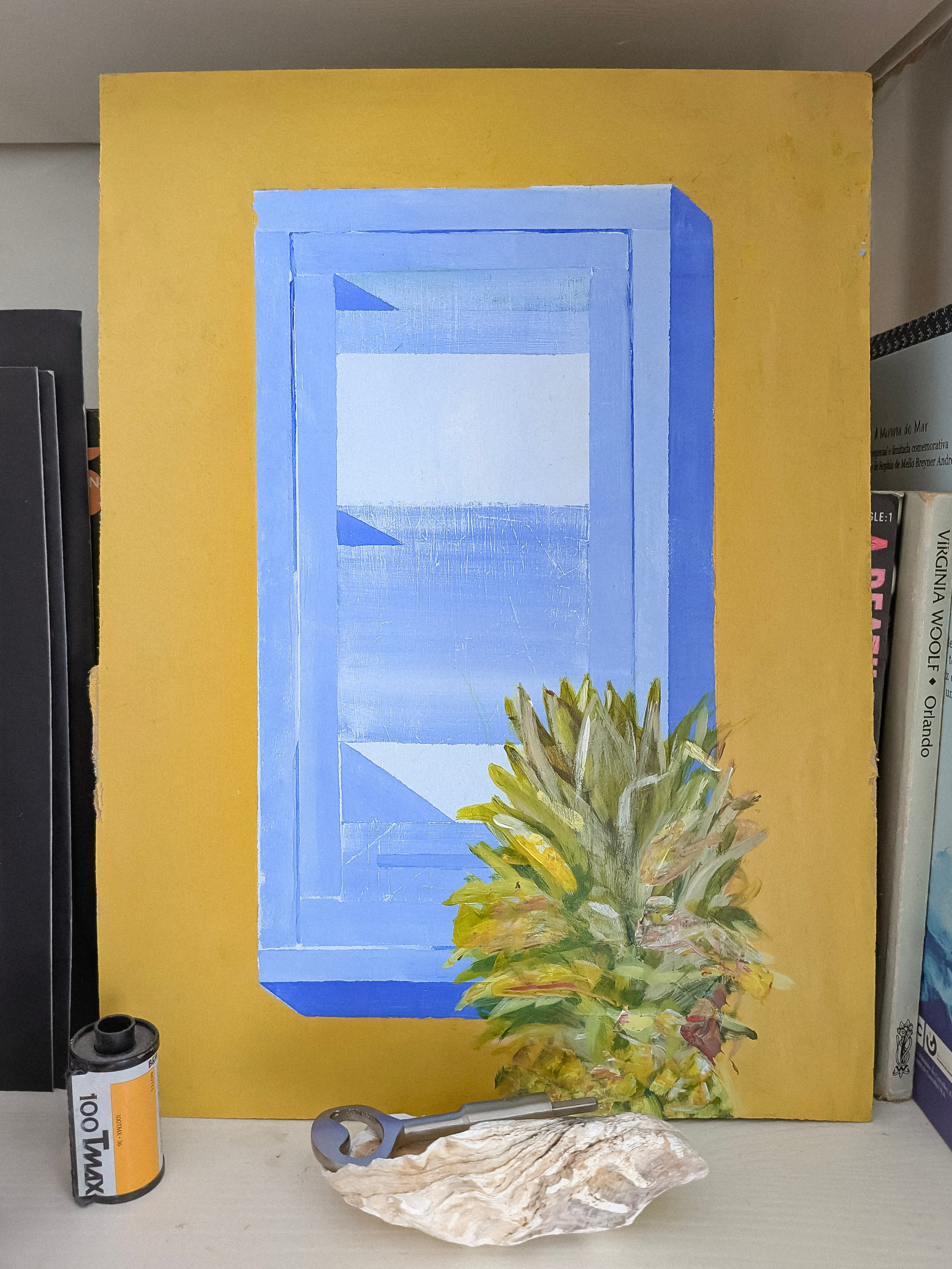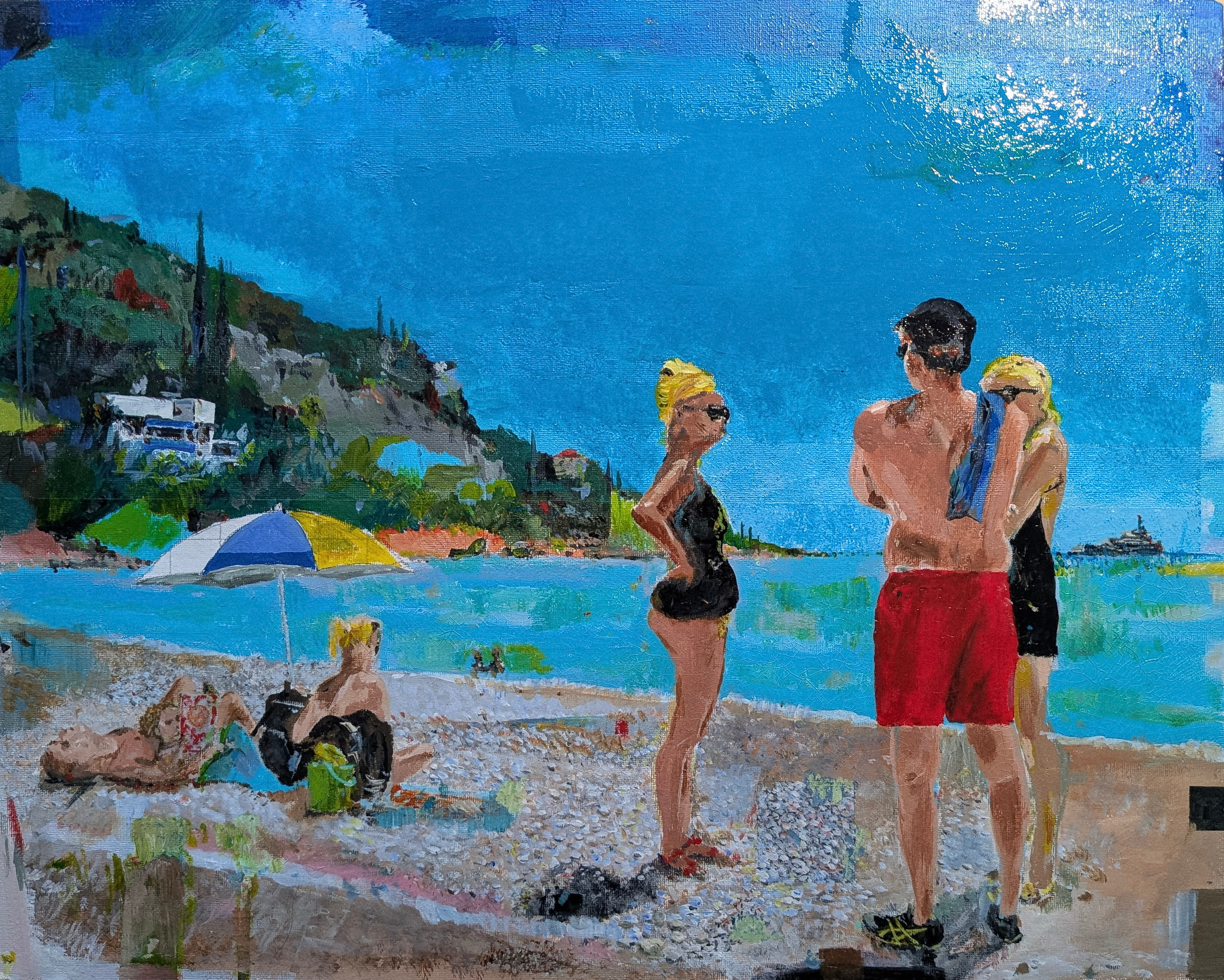 A petite homage following a swim in Roquebrune Bay, shadowed by the stories of Eileen Gray’s E-1027 and Le Corbusier’s Cabanon. The painting attempts to capture a specific spirit: living entirely in the moment, free from the pressure of past or future—a feeling that was abundant in youth but feels sparse today. The painting still holds the peace of that afternoon but it doesn’t capture the exact physics of the sea color it was there, that day.I spent a massive amount of time chasing that unique sea blue, only to conclude that it exists in light, not pigment. Even Yves Klein’s blue seems too dark in comparison.