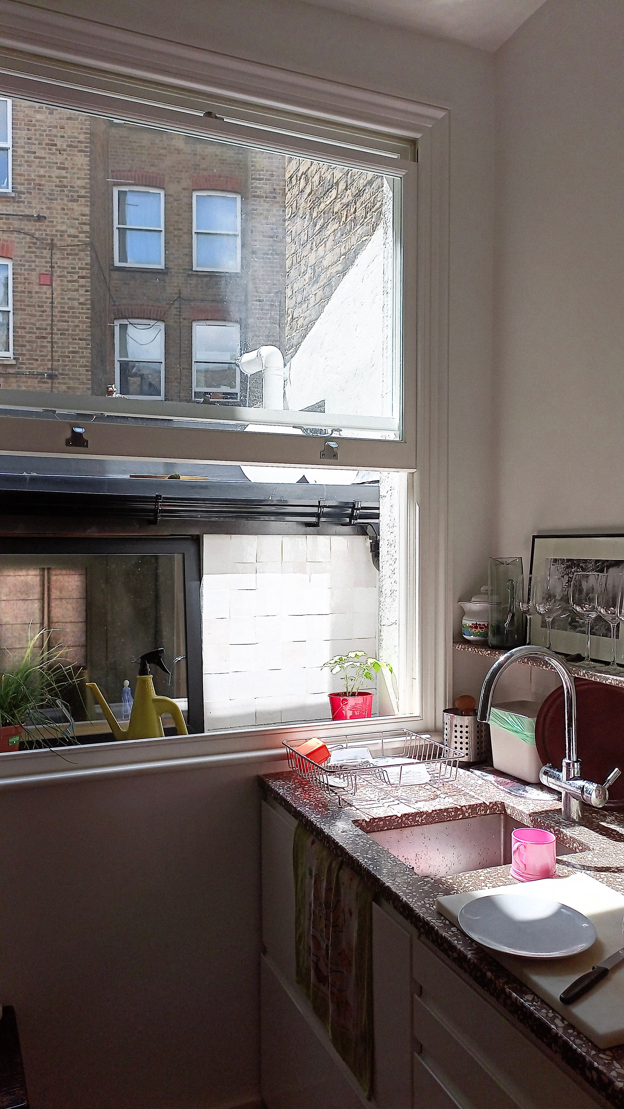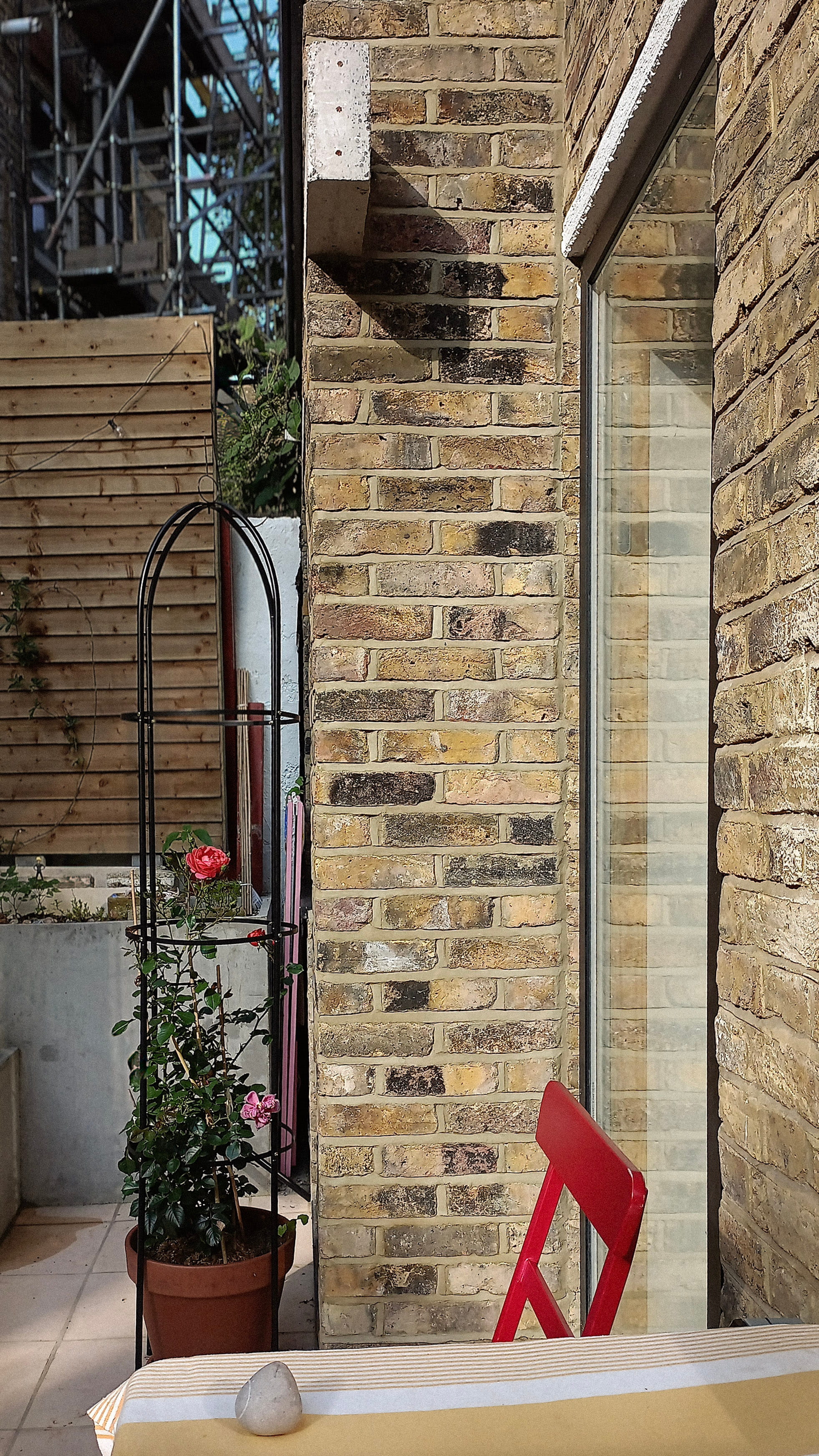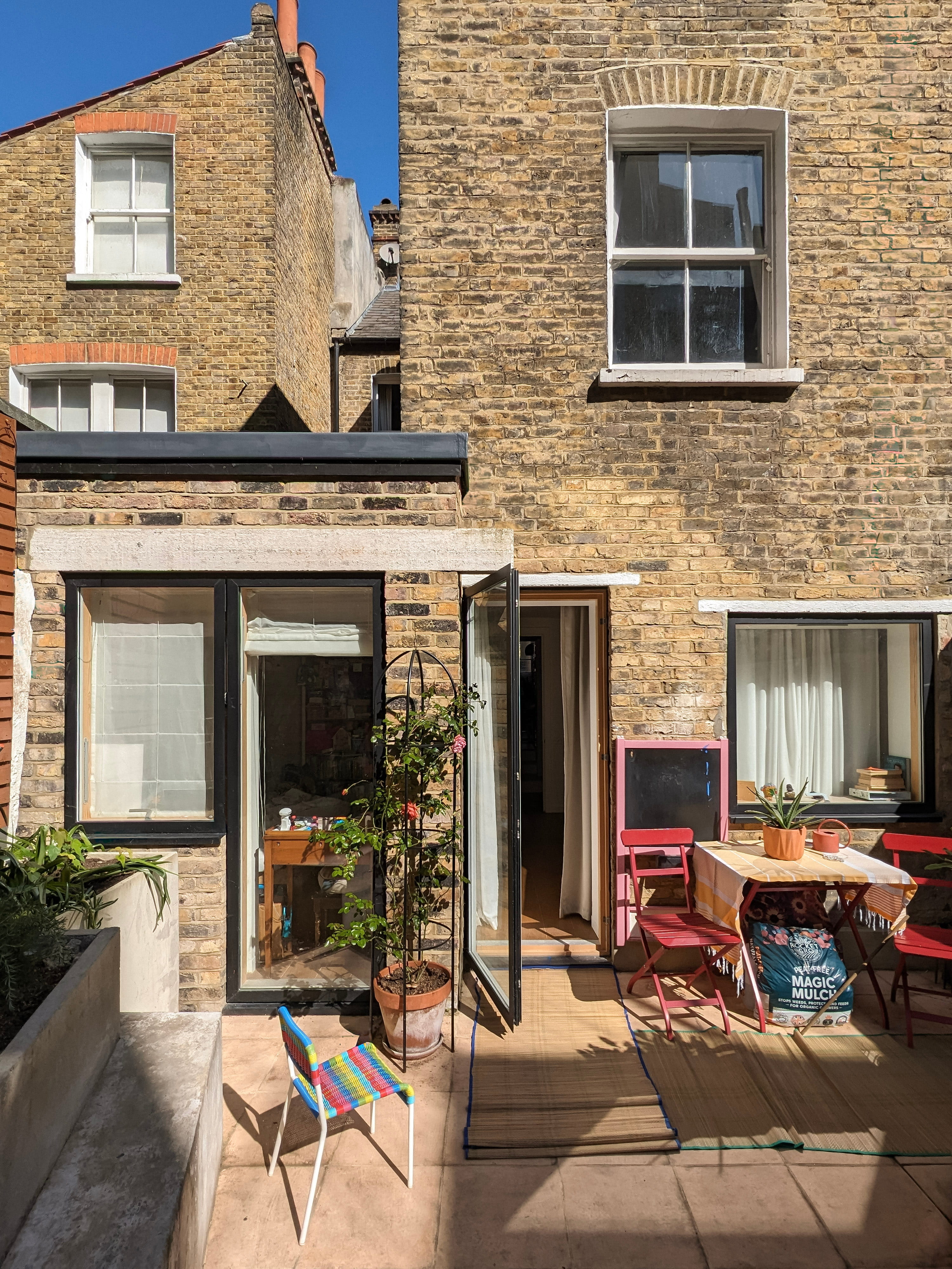 Our flat was no exception. The rear garden is overshadowed by tall neighbouring buildings, blocking direct sunshine from late September to May. To grow, we had to use the narrow side return alleyway to build a minimal-width extra bedroom.