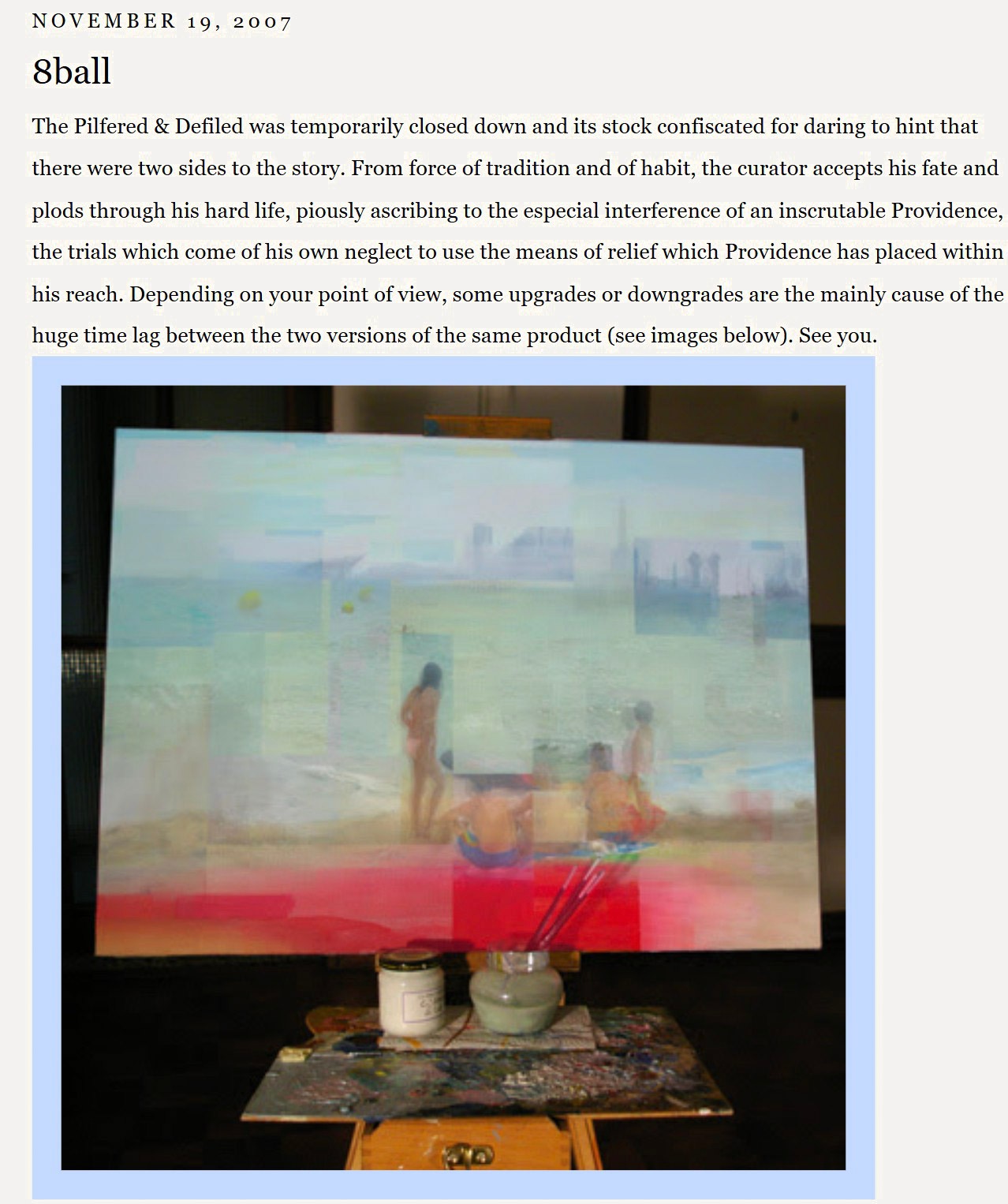 This painting served as the closing chapter for Pilfered & Defiled, my blog dedicated to early "Dirty New Media" and digital assemblage. After two years and over 400 digital works treating the JPEG as a malleable, breakable object, I needed to return to the physical weight of raw materials. It applies the logic of the "corrupted JPEG", the layers, the errors, the fragmentation, to the traditional surface of the canvas, proving that things are rarely what they seem, whether on a screen or on a wall.
